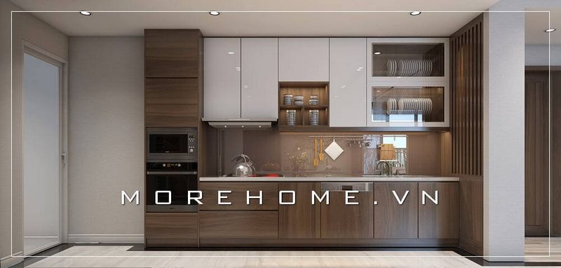 Thiết kế nội thất phòng bếp chung cư hiện đại và tiện nghi với gỗ công nghiệp